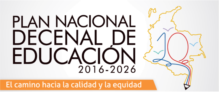 El Plan Nacional Decenal de Educación 2016-2026, PNDE, es la política pública que marca el norte de Colombia en Educación. Mecanismo único de consulta, en el que la educación se convierte en un compromiso de TODOS los colombianos y uno de los principales temas de la agenda pública.